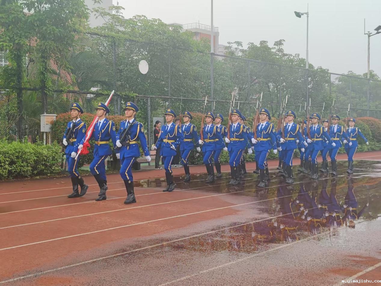 国旗护卫队迈着整齐的正步护送国旗入场,旗角在晨风中飘扬,当嘹亮的国歌响起,五星红旗在晨光中舒展,缓缓上升。全体师生肃穆而立,全神贯注,对国旗行注目礼,心中激荡着对祖国的崇敬与热爱。