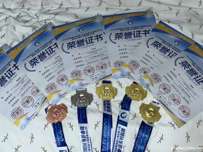 吴金香、王琦豪、丁晟恩在竞技比赛中,面对实力强劲的对手,毫不畏惧,以精准的动作和敏捷的反应,一路过关斩将,最终摘得金牌;王怡婷在竞技中,凭借稳定的发挥和顽强的斗志,成功斩获银牌;陈天德在竞技比赛中,同样表现出色,力压众多对手,将铜牌收入囊中。此外,还有黄庭威等队员在各自项目中发挥出色,为团队贡献了宝贵的分数,助力我校跆拳道协会取得三金一铜一银的辉煌成绩 。