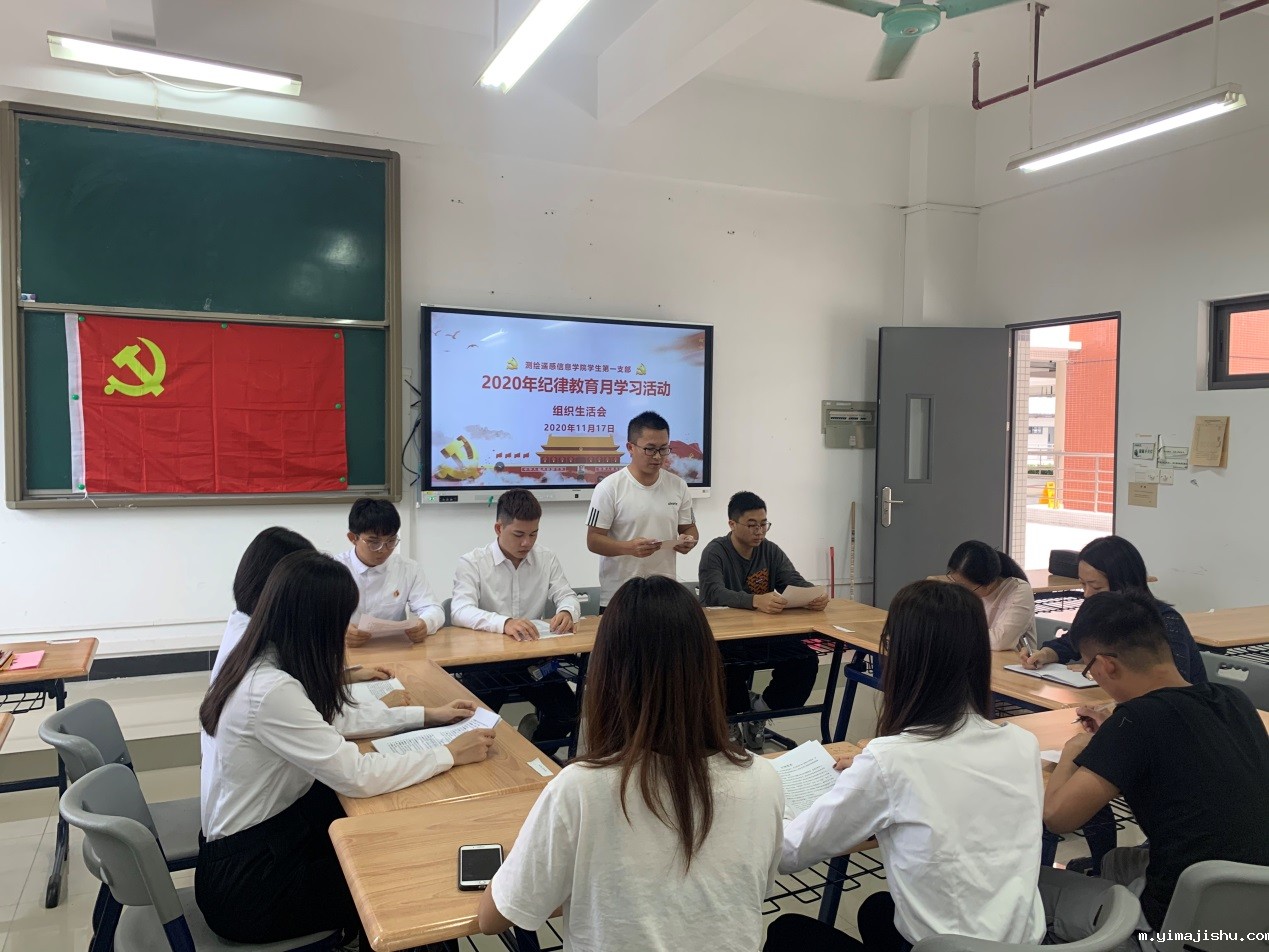 为深入学习贯彻习近平新时代中国特色社会主义思想,根据《中共ky体育APP下载委员会2020年纪律教育学习月活动实施方案》的通知,11月17日下午,测绘遥感信息学院学生第一党支部在1-409开展纪律教育月专题组织生活会。会议由学生党支部书记张玉荷主持,支部委员及全体学生党员参加了会议。