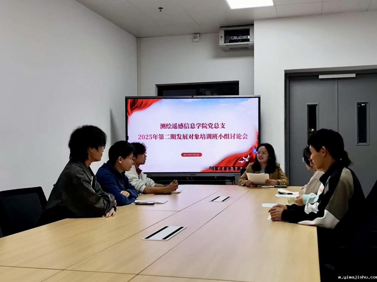 为深入学习贯彻党的二十届四中全会精神,严把党员发展质量关,2025年12月1日,测绘遥感信息学院党总支在图书馆2-405室组织召开2025年第二期发展对象培训班小组讨论会。会议由学院专职组织员唐婷主持,全体培训班学员参加。