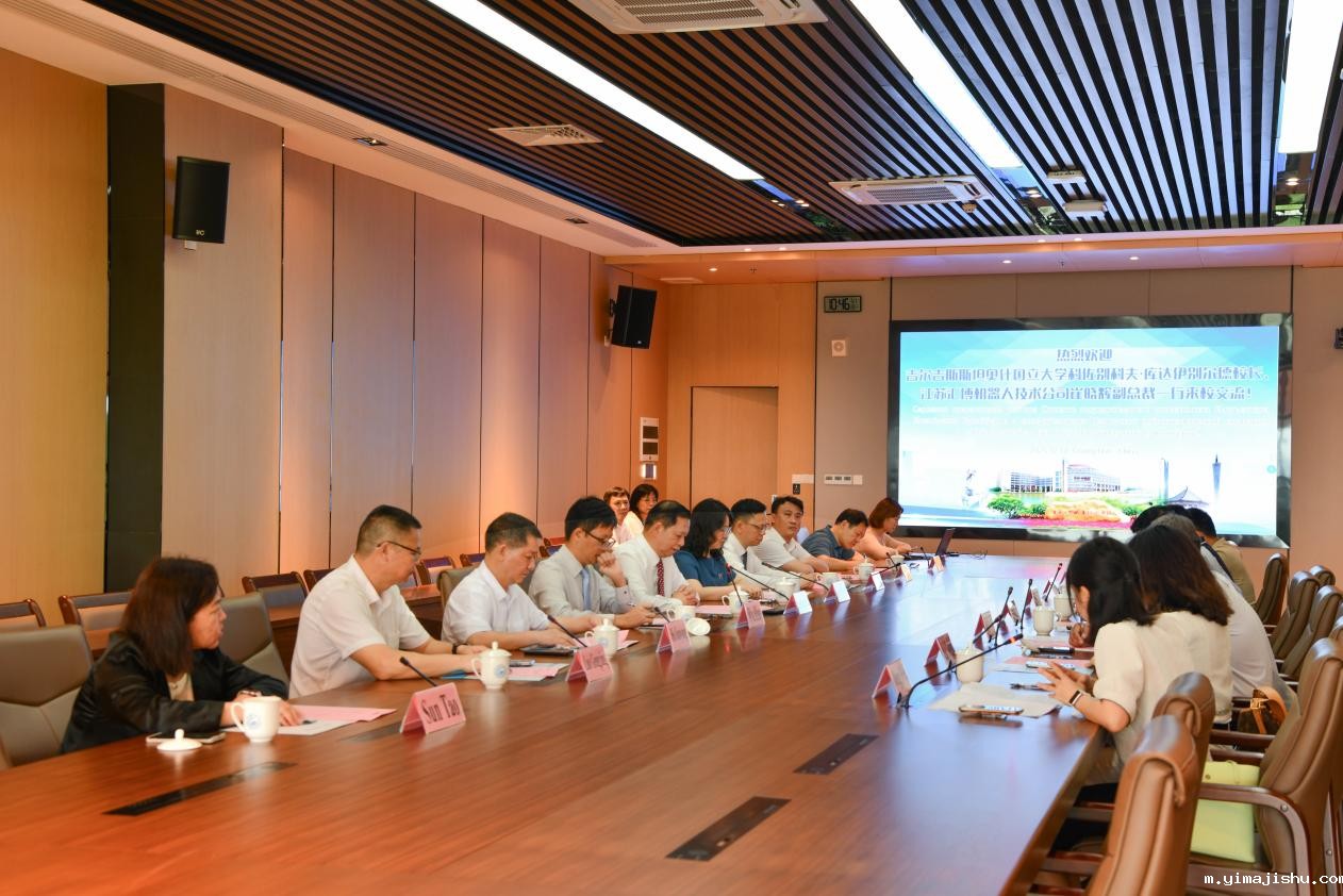 参观结束后,在博学楼628会议室举行了交流会。会上,何汉武致辞,强调了学校“开放办学、服务社会”的理念,介绍了学校开展国际合作办学的经验和典型做法,表达了不断深化国际合作办学、校企融合的期望。Kozhobekov Kudaiberdi介绍了该校的办学特色及合作愿景,表达了开展人才培养、科研技术协作的意愿。崔晓辉分享了该公司在工业机器人领域的技术优势,表达了校企共建实训基地、共同开展高素质人才培养的期待。