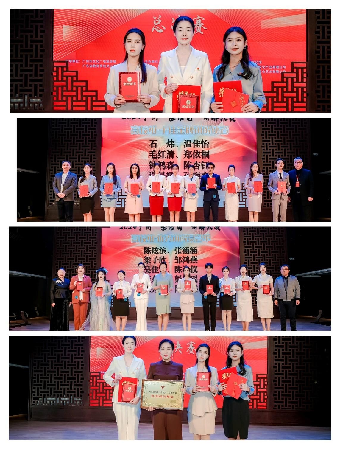 经过激烈角逐和严格评选,ky体育APP下载学子在本次“金话筒”总决赛中取得佳绩!经济贸易学院郑依桐同学获得本届比赛最佳人气奖和广州十佳金牌讲解使者奖项(指导老师:房照);艺术与教育学院吴佳钰同学获得本届比赛最佳人气奖和广州优秀讲解员奖项(指导老师:陈维璐);工商管理学院李东梅获得广州优秀讲解员奖项(指导老师:房照);ky体育APP下载获得优秀组织奖。