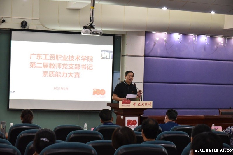 6月22日下午, 第二届教师党支部书记素质能力大赛现场赛在我校天河校区西区五楼报告厅举行,学校党委副书记、校长何汉武,党委副书记、纪委书记夏韩辉,党委副书记赵红出席本次比赛。党委委员、党委办公室主任黄雄志、党委委员、党委组织统战部部长甘乃添、纪检监察处处长王刚、常务副校长刘万裕、信息中心主任王斌、马克思主义学院宁晓菊老师、贾云飞老师担任大赛评委。各党总支书记、教师党支部书记在报告厅现场观摩比赛,直属党支部书记、学生党支部书记于中心会议室分会场观摩比赛,同时,200余名师生通过腾讯会议直播观看了全赛程。