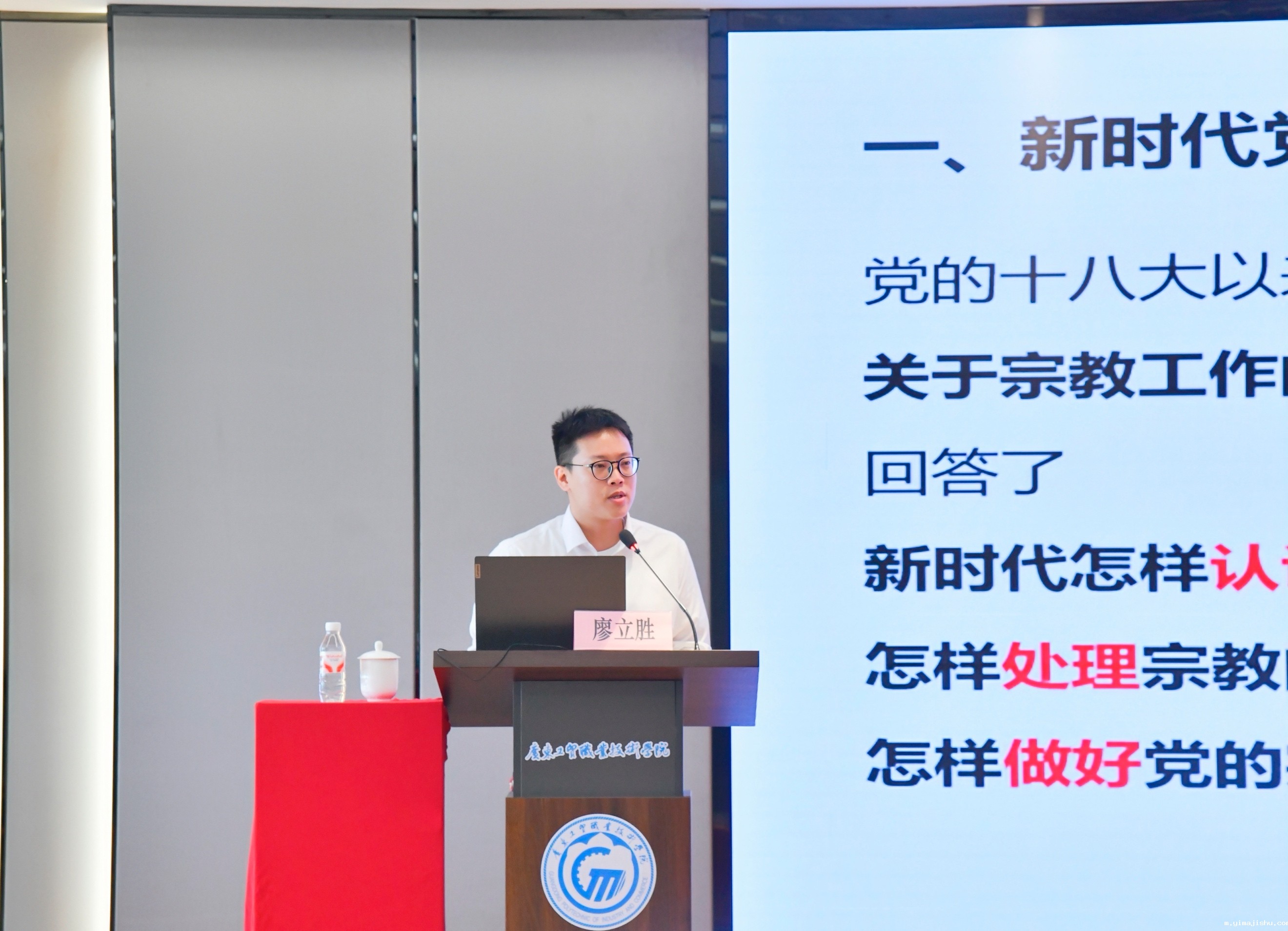 此次培训结合当前宗教重点工作和基层辅导员、组织员等现实工作需要,特别邀请了广东省委党校党的建设教研部副教授、国家二级职业指导师廖立胜进行专题辅导。据悉,廖立胜长期从事党的思想建设和中国共产党人精神谱系的教学科研工作,并在宗教工作领域有深厚的学术积累。培训中,他以《新时代党的宗教工作基本方针与实践路径》为题,从习近平总书记关于宗教工作的重要论述入手,阐明了新时代党的宗教工作的根本遵循,深入剖析了新时代党的宗教工作的基本方针,并结合丰富的实际工作案例,详细介绍了新时代党的宗教工作“导”之有方、“导”之有力、“导”之有效的实践路径。